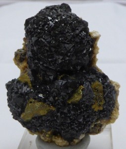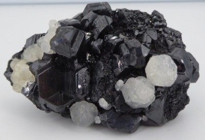 Bel agrégat de cristaux noirs de sphalérite. Le cristaux les plus grands mesu...