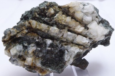 Bon échantillon composé d'une base de calcite cristallisée en rombohè...