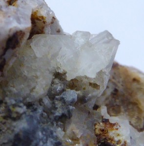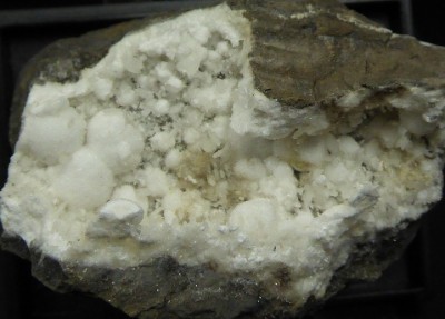 Curieuse cristallisation flottante de calcite blanche à grise.