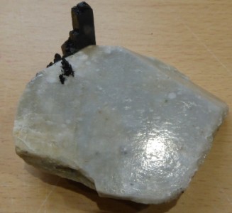 Pièce intéressante de microcline blanche avec un cristal d'aegirine d...