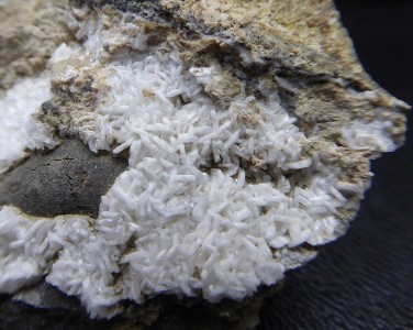 pièce recouverte de baryte à lamelles blanches, formant une intercroissance ...