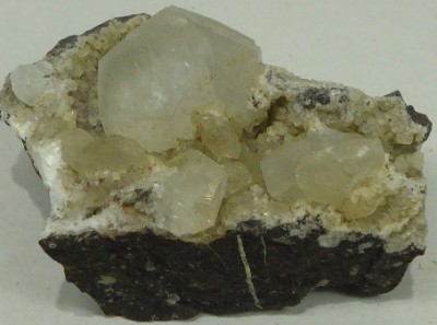 Belle cristallisation d?analcime à éclat nacré reposant sur une gangue basalt...