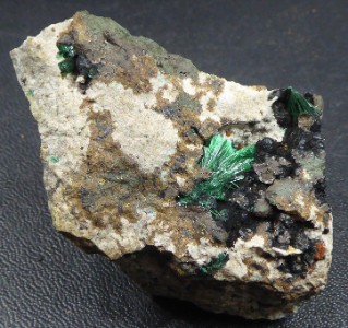 Bon échantillon montrant une multitude d'hématite en cristaux noirs b...