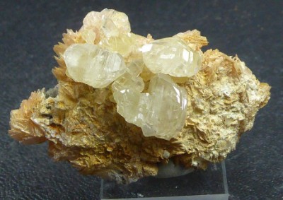 Très belle pièce montrant plusieurs cristaux rhomboédriques translucides dont...