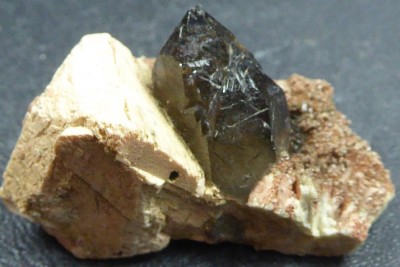 Belle pièce de microcline associée à du quartz fumé de 1 cm, d'aegiri...