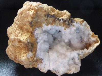 Beau morceau de septaria ayant dans son centre une cavité remplie de fins cri...