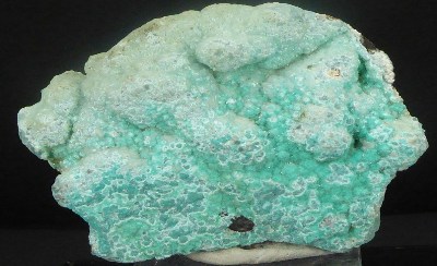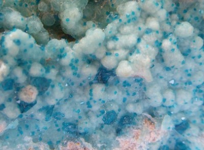 Très belle pièce de smithsonite bleutée montrant des cristaux globulaires.