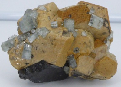 Rare échantillon associant plusieurs cristaux de béryl accolés et non terminé...