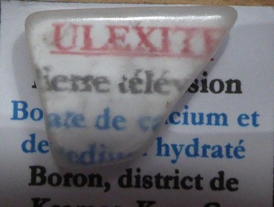 Bel échantillon de ce rare borate de calcium et de sodium hydraté montrant un...