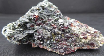 Echantillon peu fréquent d'hédenbergite verte associée à des grenats ...