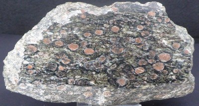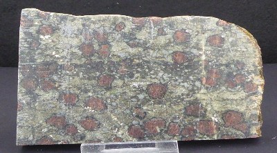 Belle pièce d'éclogite avec une face polie montrant des sections de g...