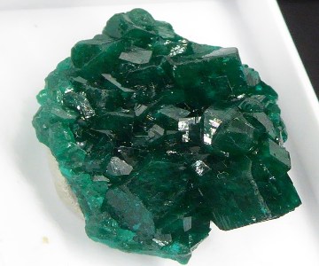 Très belle pièce de dioptase verte brillante posée sur de la dolomie blanche....