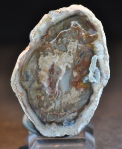- Bois enfoui depuis 200 à 20 millions d'années avant notre ère. Le bois s'est pseudomorphosé suite au passage d'eau chargée en silice. Selon le processus, il s'est transformé en jaspe, en calcédoine ou en opale. Utilisation : son usage est essentiellement ornemental (objet de décoration, table pour les pièces de grande dimension). Photo I et II : Madagascar (photo C.Garon).