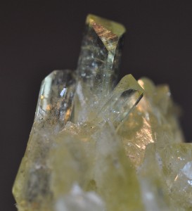 Inclusions de tourmaline verte, de lamelles de muscovite, herdérite, albite, apatite,