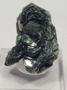 Nommée en 1851 du grec klinein = incliner, et chloros = vert, pour sa couleur et les grands angles entre ses axes optiques.