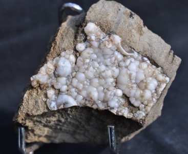 - Variété de calcédoine guttulaire. Photo I et II : mine des rois, Le Colombier des rois, 2 km à l'est de Lempdes, Puy de Dôme (photo et collection C.Garon).