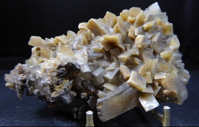 Très belle pièce montrant plusieurs cristaux rhomboédriques translucides dont...