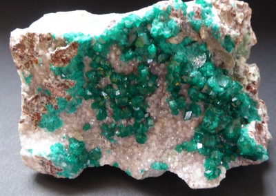 Bel échantillon de dioptase d'un beau vert brillant. Les cristaux mes...