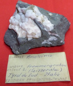 Belle cristallisation d?analcime à éclat nacré reposant sur une gangue basalt...