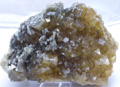 Bonne pîèce de fluorite cubique grise à noire dûe à des inclusions de galène....