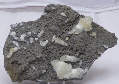 Curieuse cristallisation flottante de calcite blanche à grise.