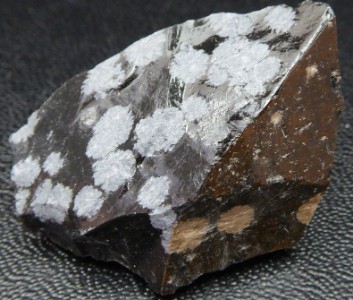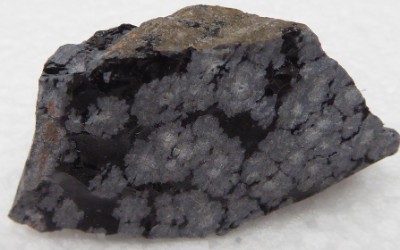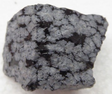 Belle pièce montrant des mouches blanche dans de l'obsidienne noire. ...