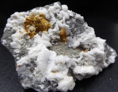 pièce recouverte de baryte à lamelles blanches, formant une intercroissance ...