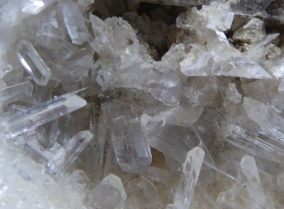 Cavité remplie de superbes cristaux de gypse transparents et brillants. Les p...