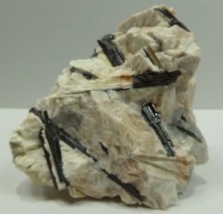 Pièce intéressante de microcline blanche avec un cristal d'aegirine d...