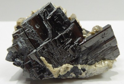 Gros cristal de ferro-columbite montrant de bonnes faces plates brillantes à ...