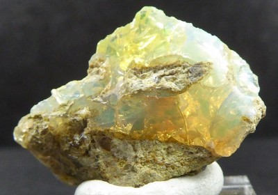Curieux échantillon de cette opale de la variété Hyalite posée sur de l&#...