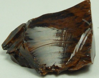 Belle obsidienne marron à noire montrant un beau clivage conchoïdale. La coul...