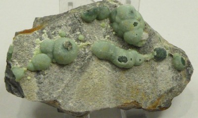 Très belle pièce de smithsonite verdâtre montrant des cristaux globulaires re...