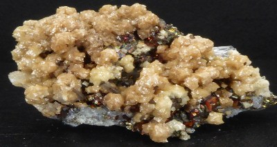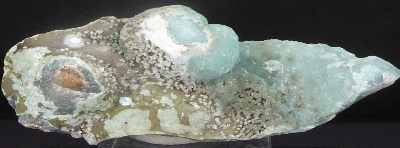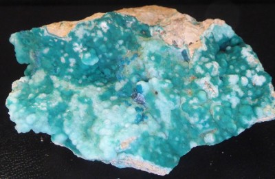 Très belle pièce de smithsonite bleutée montrant des cristaux globulaires.