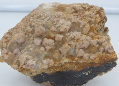 Belle pièce de dolomie brun crème associée à de petites pyrite irisées.