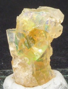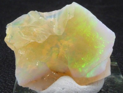 Très belle opale montrant de belles irrisations. Livrée sur son socle.