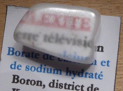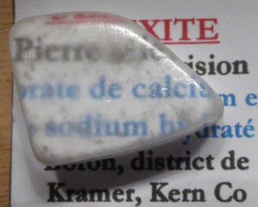 Bel échantillon de ce rare borate de calcium et de sodium hydraté montrant un...