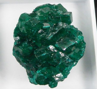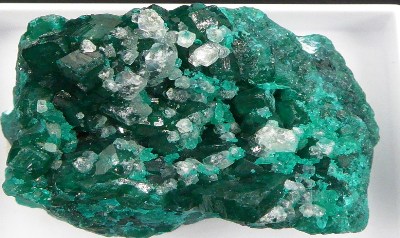Très belle pièce de dioptase verte brillante posée sur de la dolomie blanche....