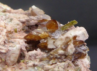 Bonne pièce composée de plusieurs cristaux de titanite marron dont le plus gr...