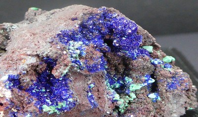 Belle pièce composée de microcristaux d'azurite associée à de la mala...