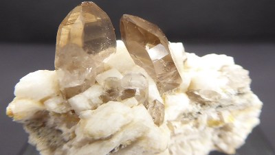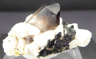 Belle pièce de microcline associée à du quartz fumé de 1 cm, d'aegiri...