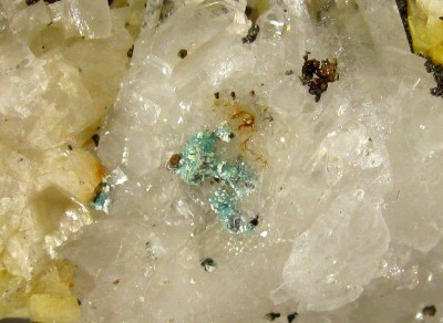 Ullmanite, quartz, calcite, sidérite, pyrite, chalcopyrite,