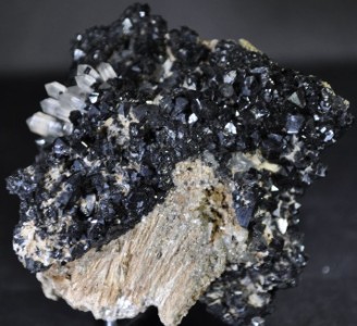 Hédenbergite, pyrite, magnétite, grenat, calcite, fluorite, goethite, hématite, néphéline, sphalérite,